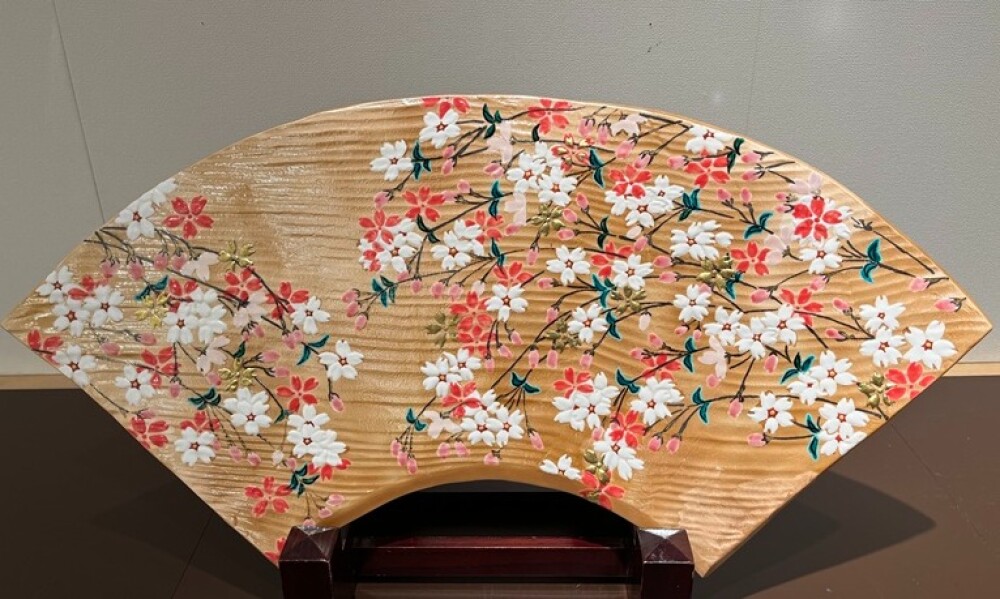 色絵ラスター彩桜扇皿